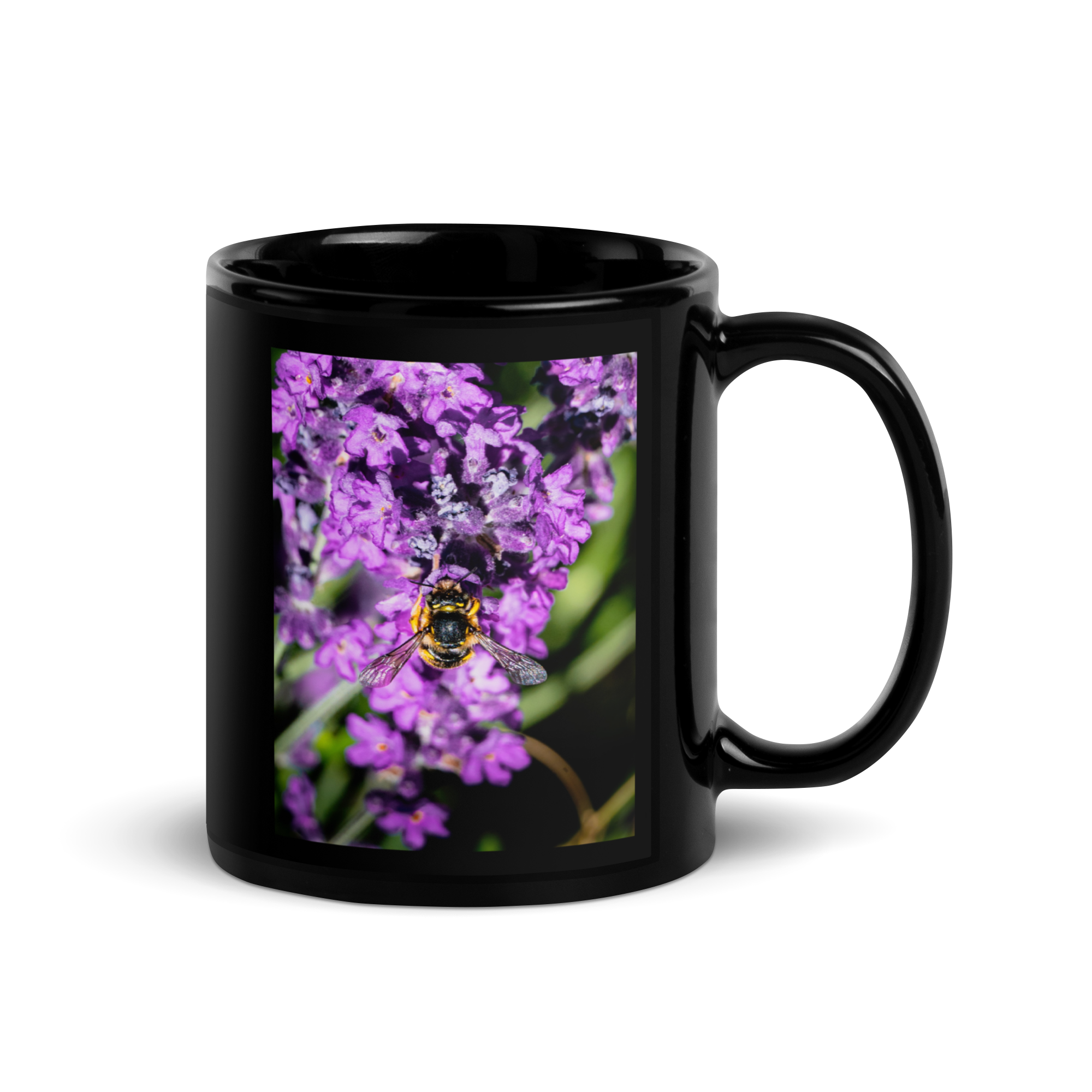 Hanging Lavender Bee Black Mug